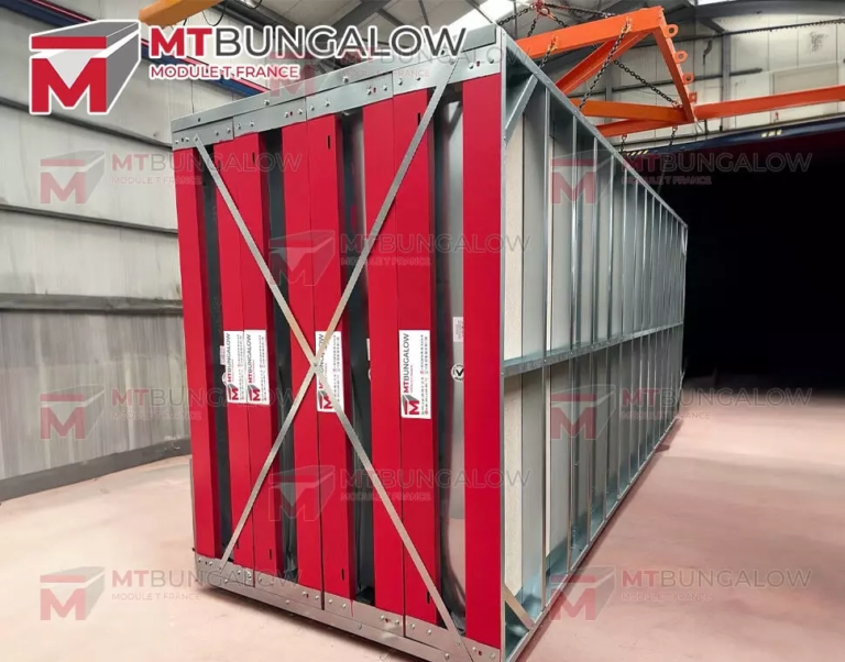 Les modules flat pack MT Bungalow optimisent le volume de transport, réduisant les coûts logistiques et facilitant l’installation dès réception.